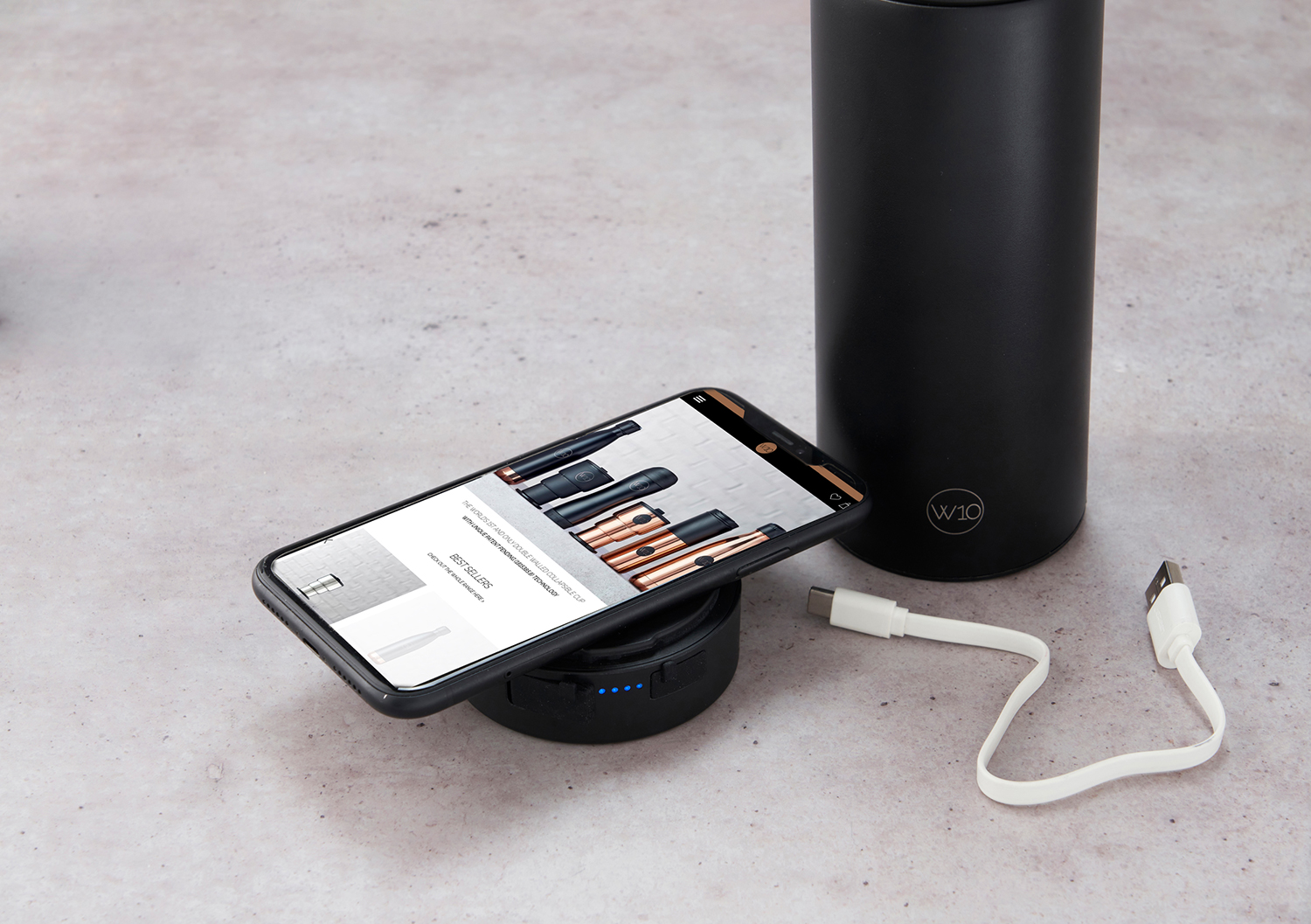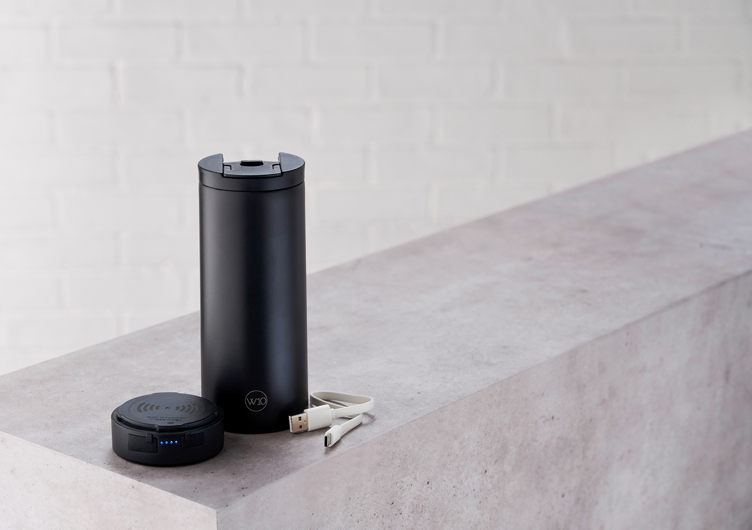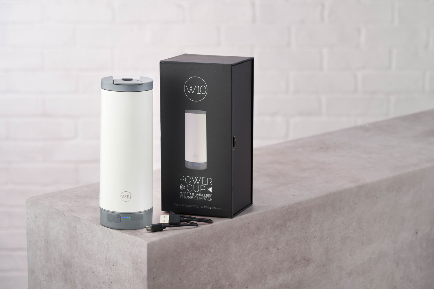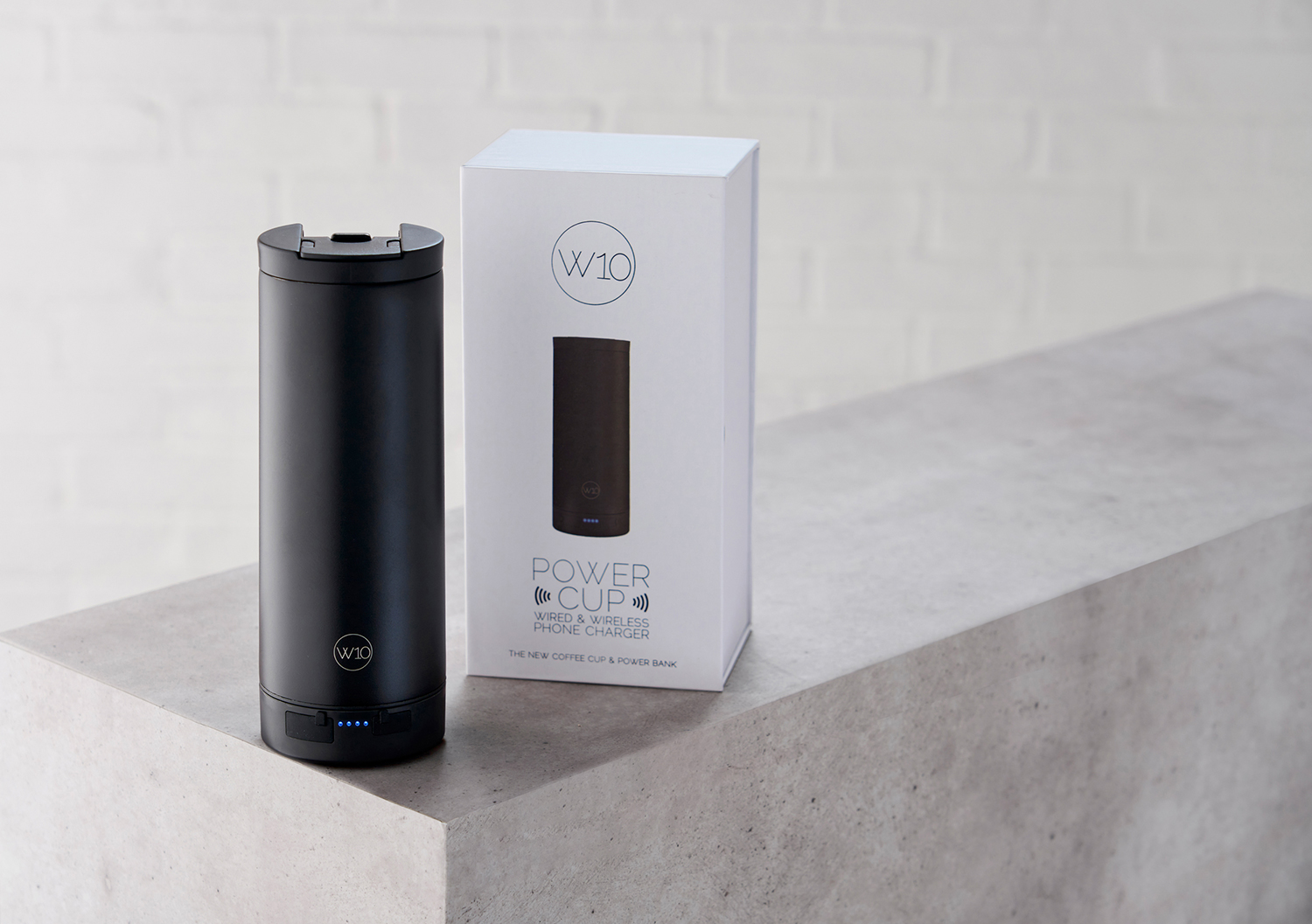 - A power cup, that not only allows you to drink your coffee but also charge your phone.